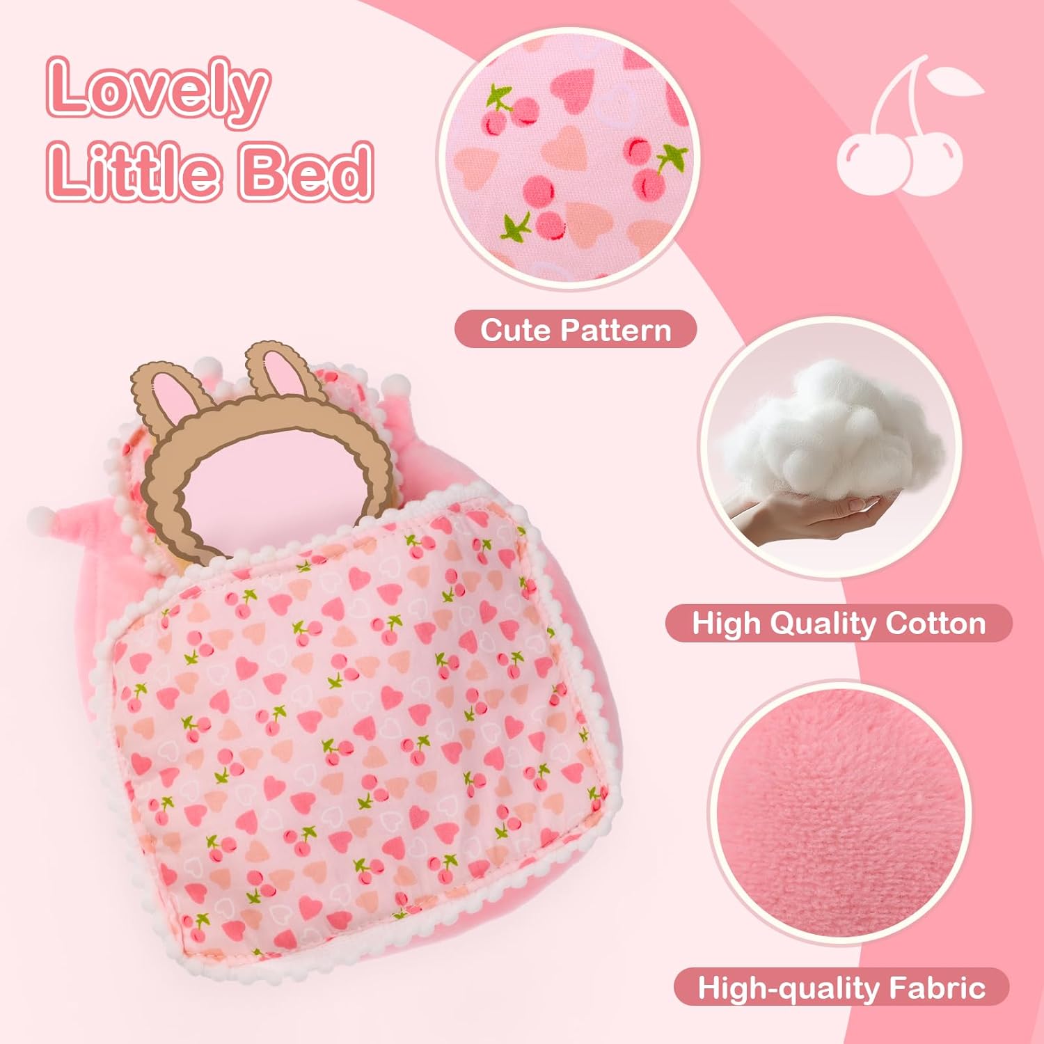 3-Piece Bedding Set: Includes a pillow, mattress, and quilt designed to create a cozy and stylish sleeping space for your Dolls.