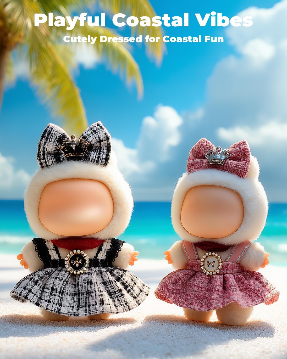 [Unique Design & Accessories] This set includes two stylish dresses for 17cm dolls: a black plaid dress and a pink plaid dress, both featuring a cute bow clip and metallic accents. These dresses offer a chic and trendy look for your doll.
