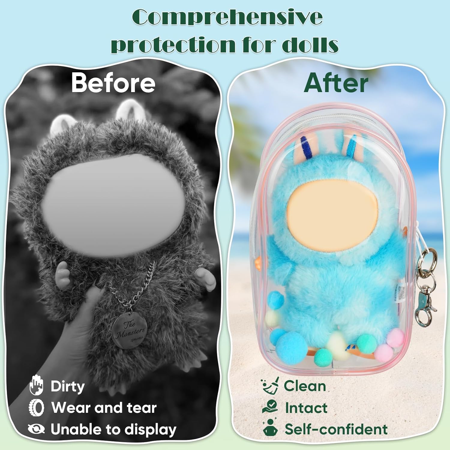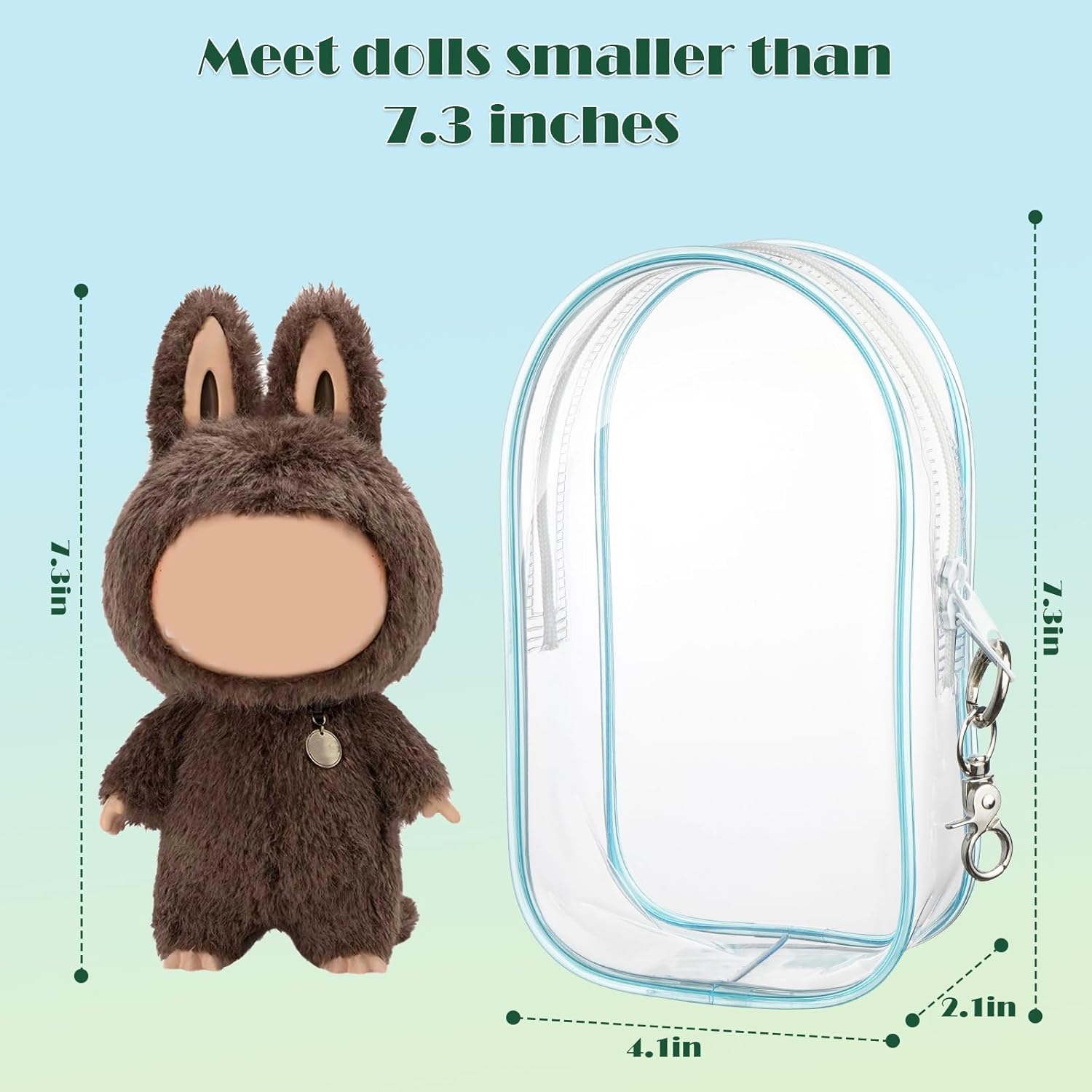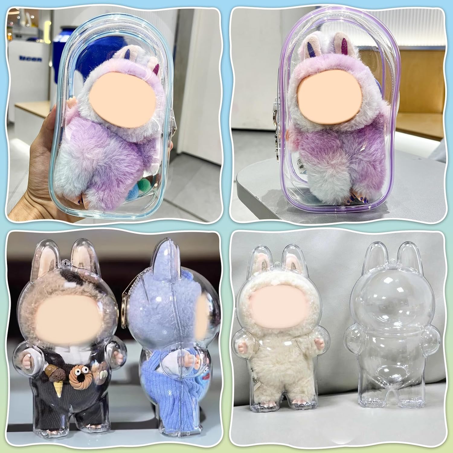 【Multi Functional Use】Adopting toothed zipper strips, it has stronger biting force and more compact and safe sealing. The double zipper design makes it more convenient to place and remove dolls. Suitable for blind box plush toys, USB cables, bracelets, keys, cards, lipstick, cosmetics samples, etc., providing comprehensive protection for your items.