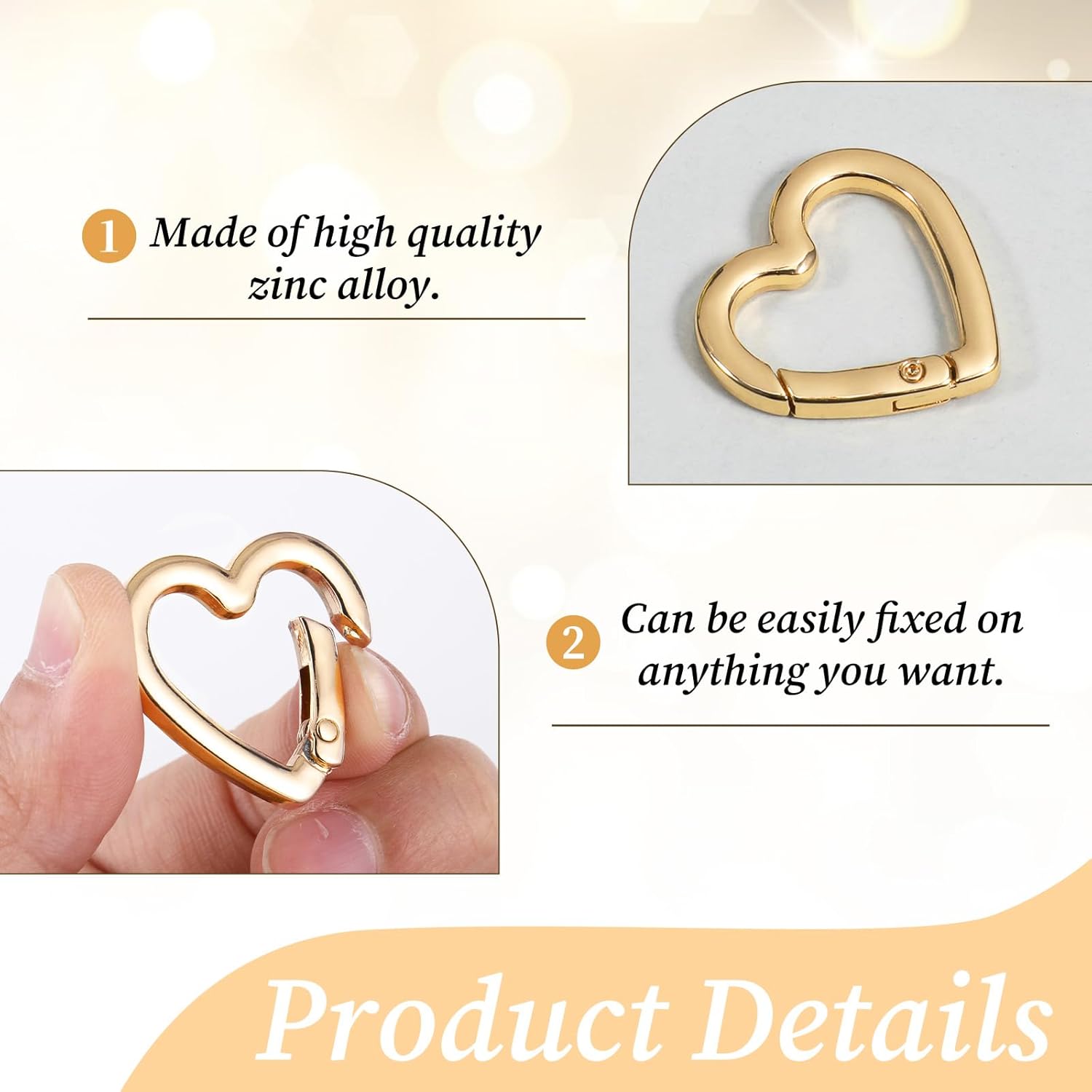 Compact Size: These heart-shaped keychain spring hooks are just the right size at 1.16″ x 1.13″. They are small enough to easily fit in your pocket or hang on your bag without looking bulky; at the same time, they can safely hold your keys, small tools, or other items.