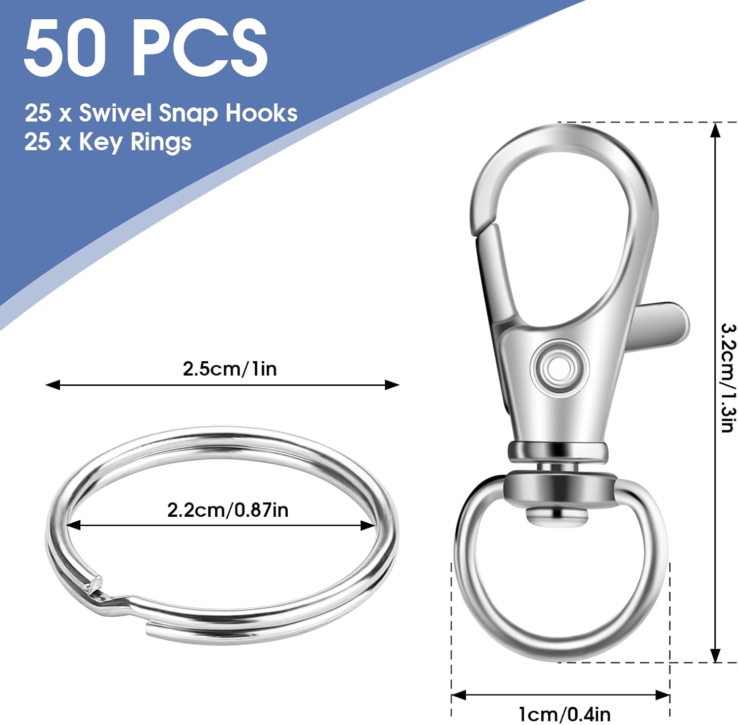 【INCLUDES】 An elegant box contains 25PCS lobster keychain clasps and 25PCS key rings, the keychain is premium, the crochet rings are sturdy. the key chain has excellent quality and reasonable price.
