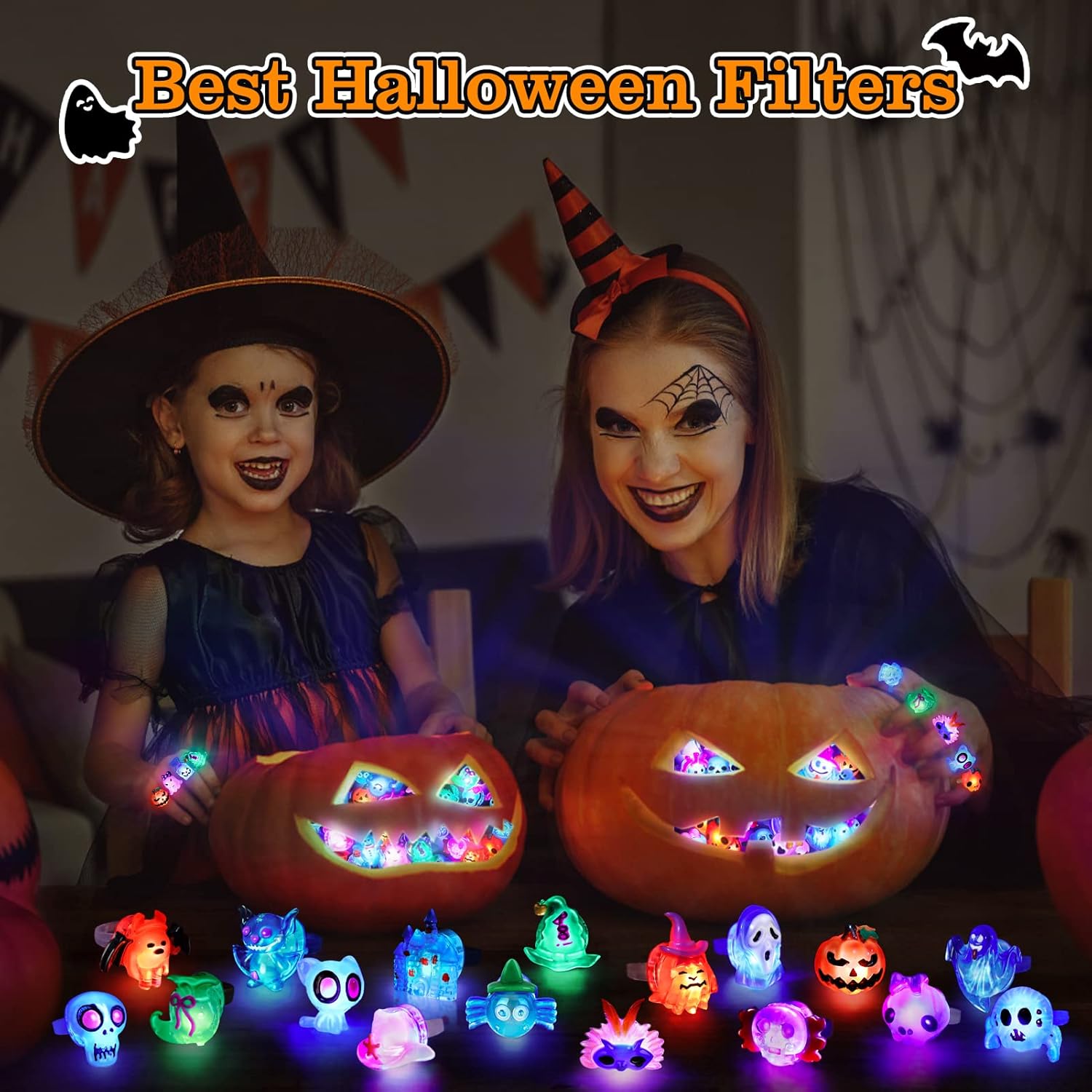💀【Halloween Party Rewards】These fun light up Halloween goodies will have kids howling with excitement and laughter, you won’t feel haunted by a bad conscience, and the parents will thank you. Flashing rings Perfect filler for Halloween goodie bags, candy bags, Trick or treaters with allergies, Halloween party supplies, Halloween events game rewards! Fun with Scary, allowing you to enjoy the joy of glowing toys and create a memory party.