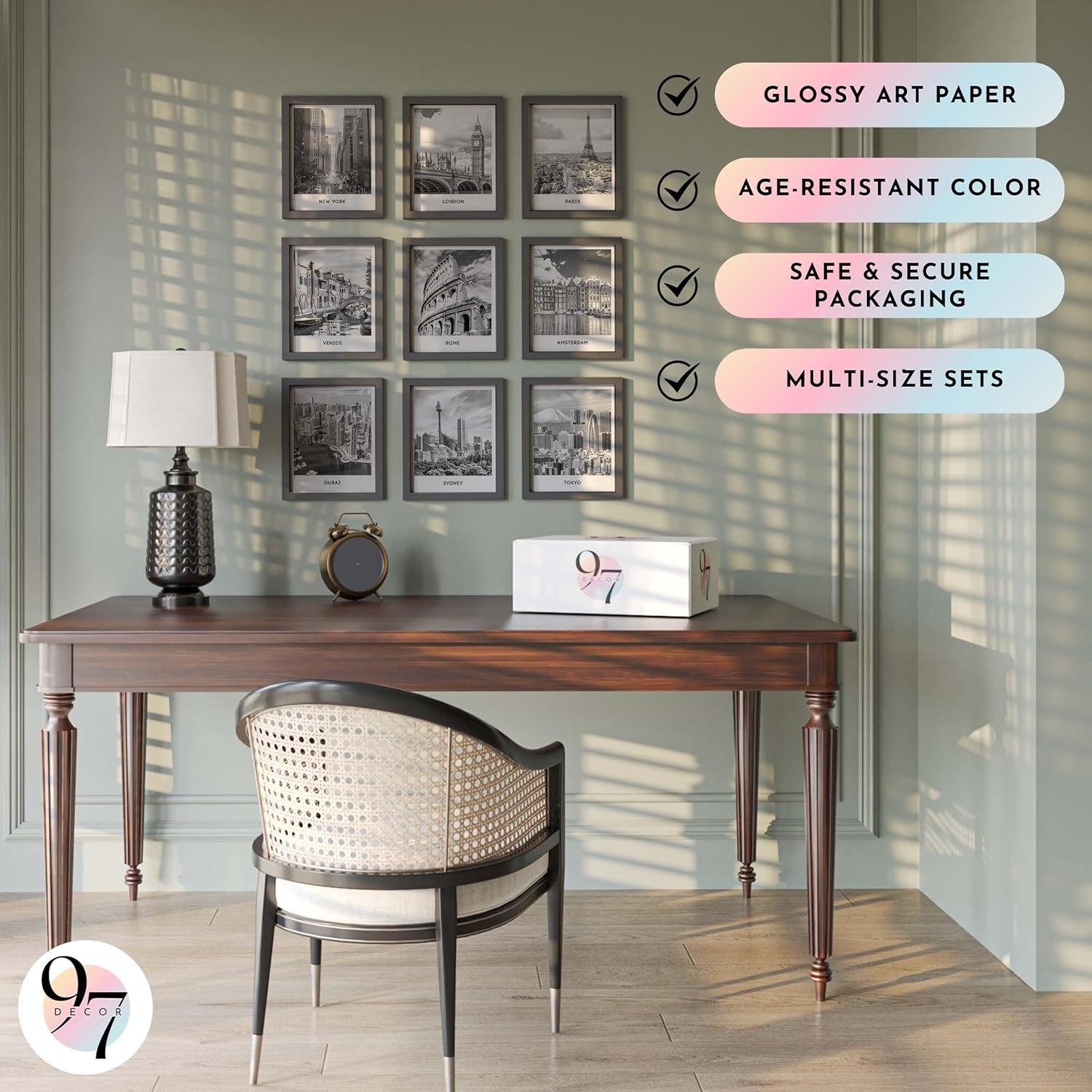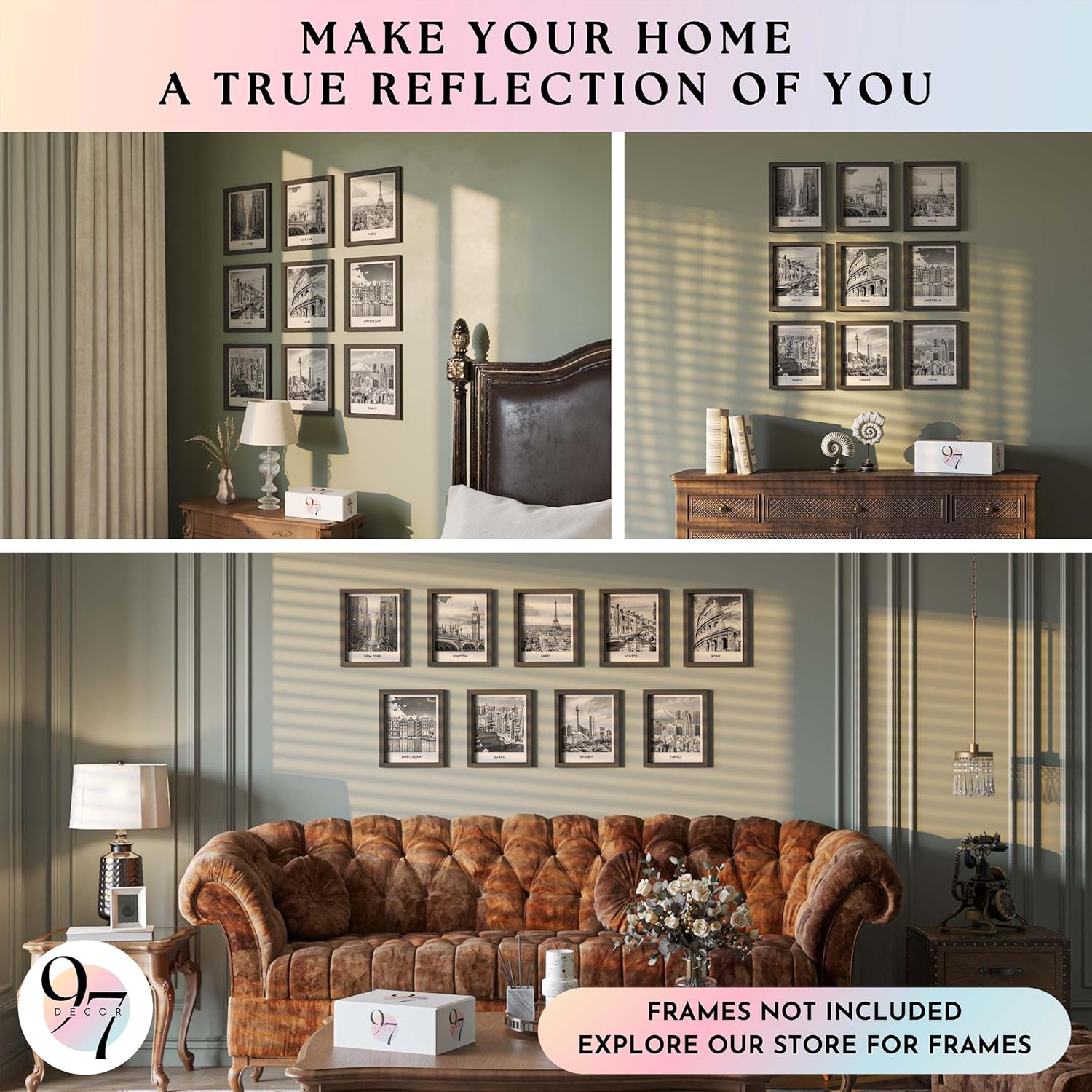 SET INCLUDES: You’ll receive 9 City Art Posters 8×10″ (UNFRAMED), including Paris London NY Rome art, beautiful city skyline black and white perfect for ant city bedroom decor