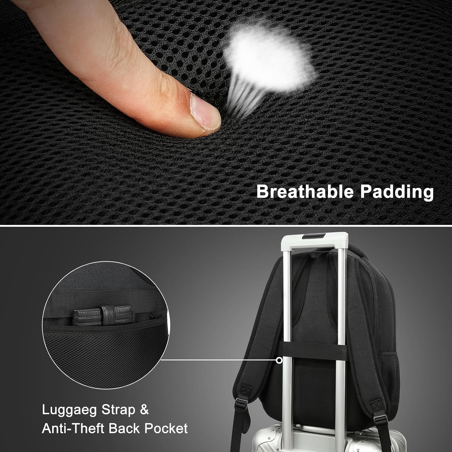 【MUTI-FUNCTIONAL DESIGN】A luggage strap allows backpack fit on luggage/suitcase, slide over the luggage upright handle tube for easier carrying. With a hidden anti theft pocket on the back protect your valuable items from thieves, please be assured that the use of