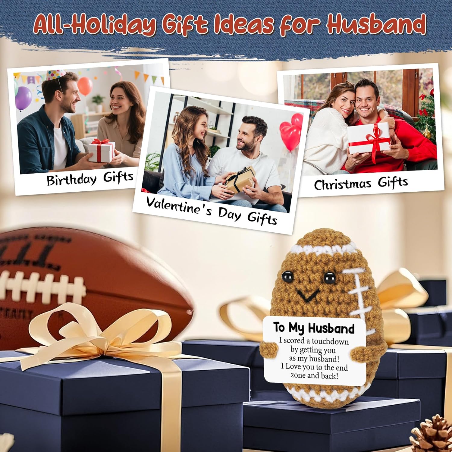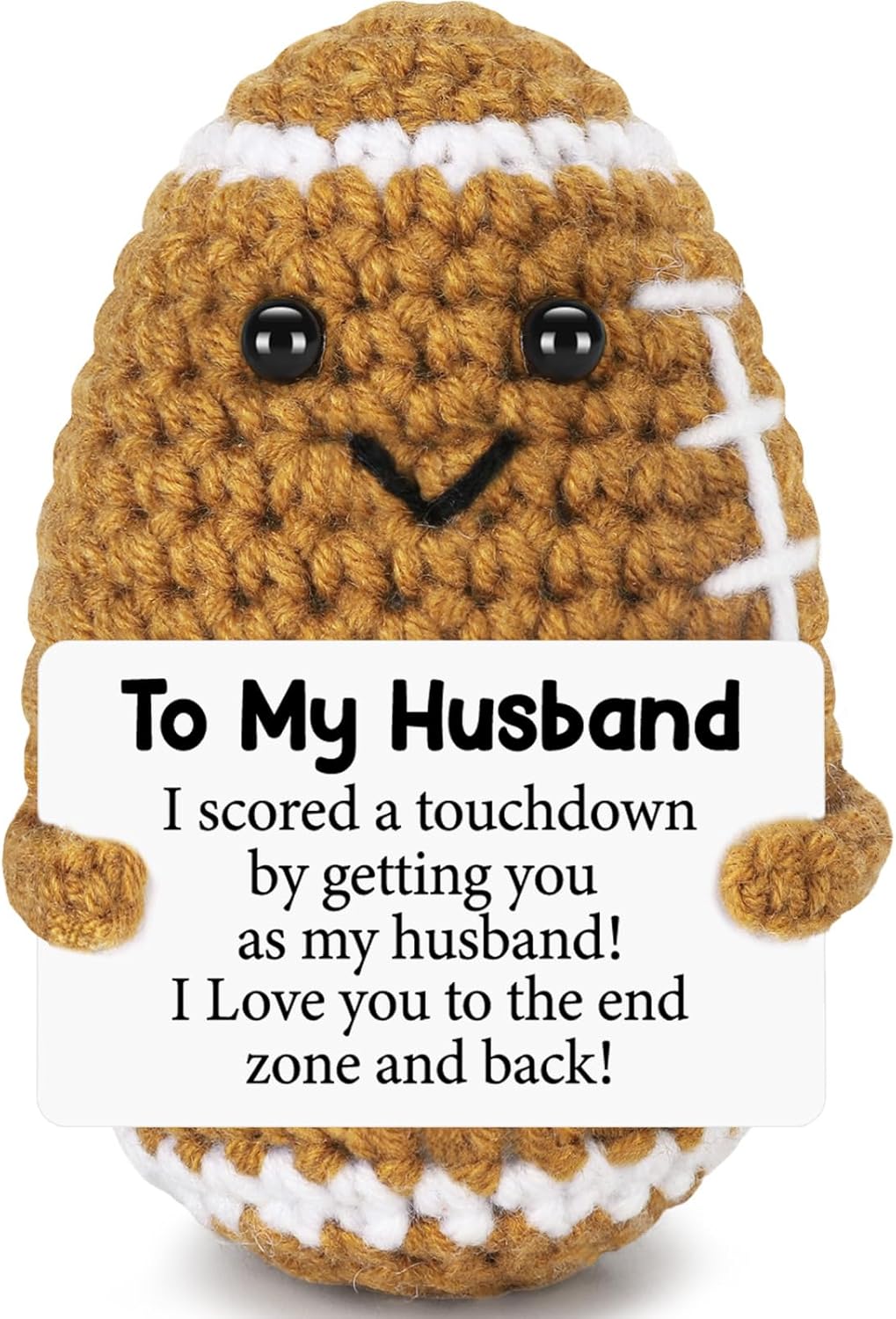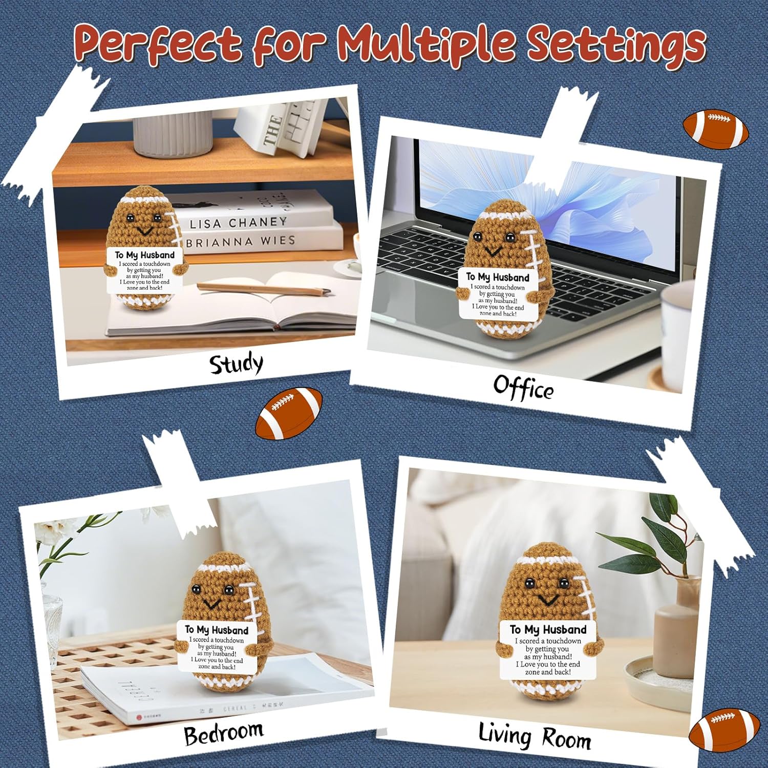 Cute Stress-Relief Gift for Husband Life can be stressful, and sometimes all your husband needs is a little reminder to relax. This cute crochet football is not just for show—it’s a stress-relieving companion that helps uplift his mood and bring a smile to his face, whether he’s at home or at work.