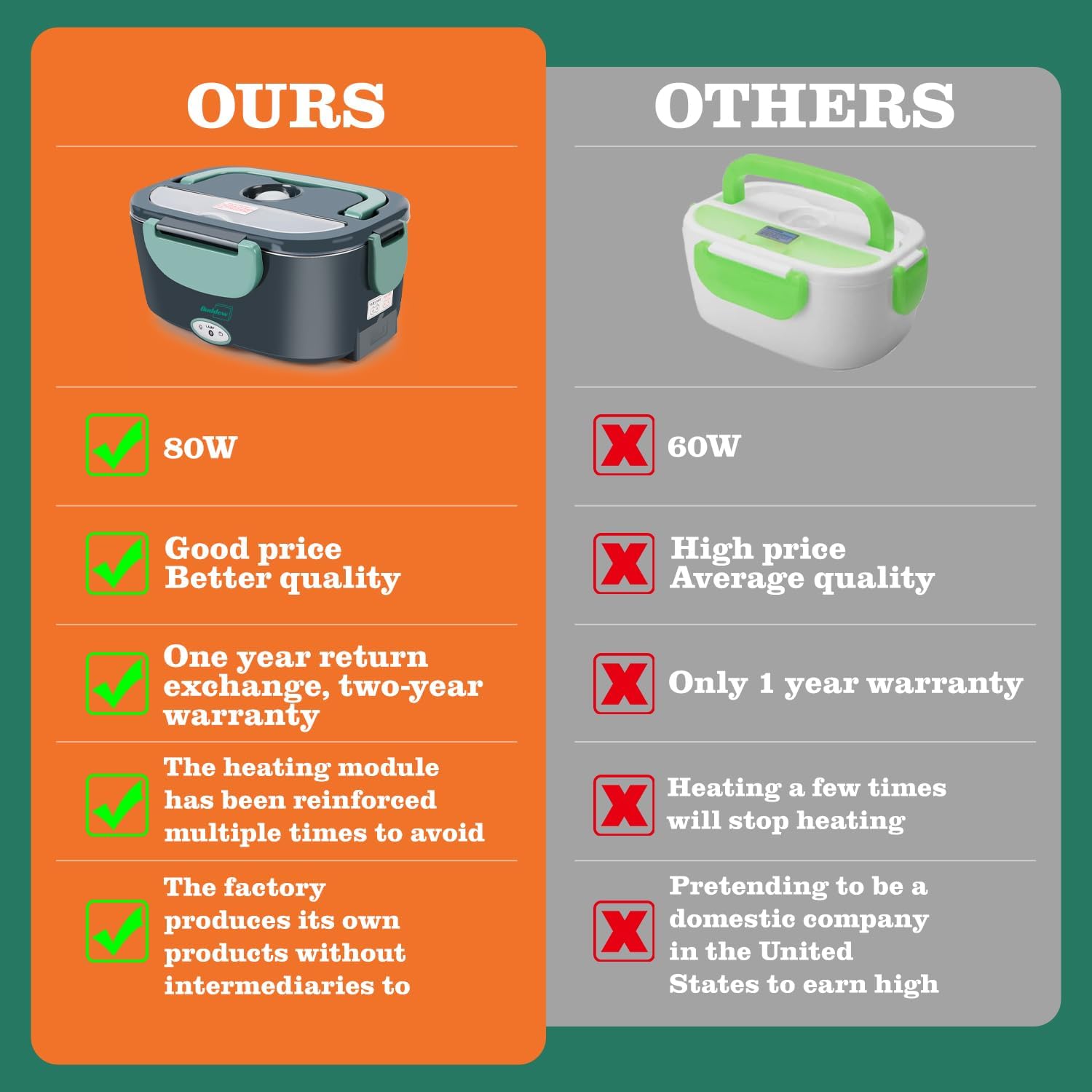 [80W Fast Heating] — It adopts the latest designed PTC constant temperature heating, and uses 80W high power.Low-consumption and high-efficiency thermal cycle, heating your lunch at the fastest speed, while maintaining the moisture and freshness of the food. No need to eat unhealthy sandwiches and fast food anymore. You can eat fresh and warm home-cooked food in the shortest time office, and construction site! A healthy way of eating