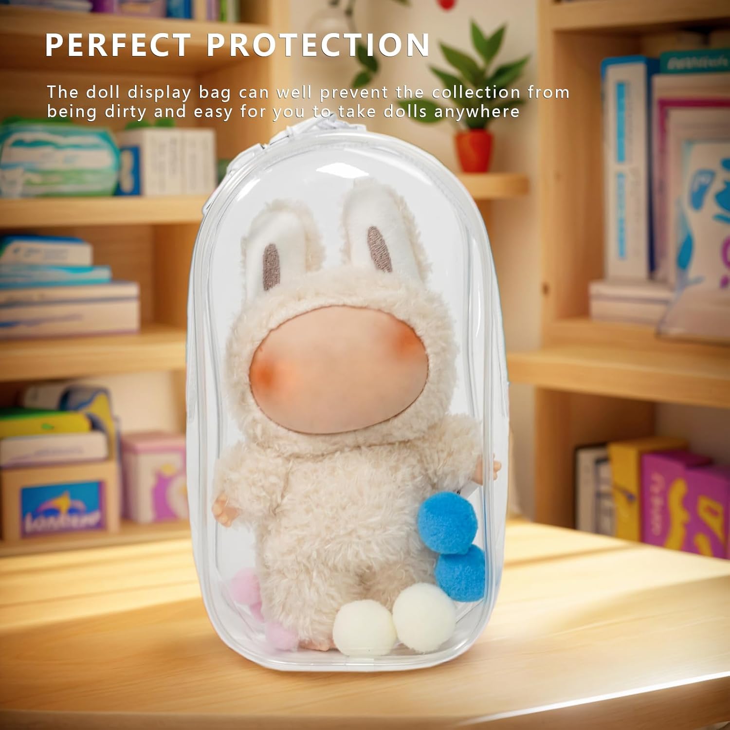 【Versatile Use】Whether as a hanging display case or a showcase, this clear figure display bag with a keychain is not only functional but also stylish, making it an essential accessory for your collectible dolls, for other similar dolls, fitting sizes 6 – 7 inches