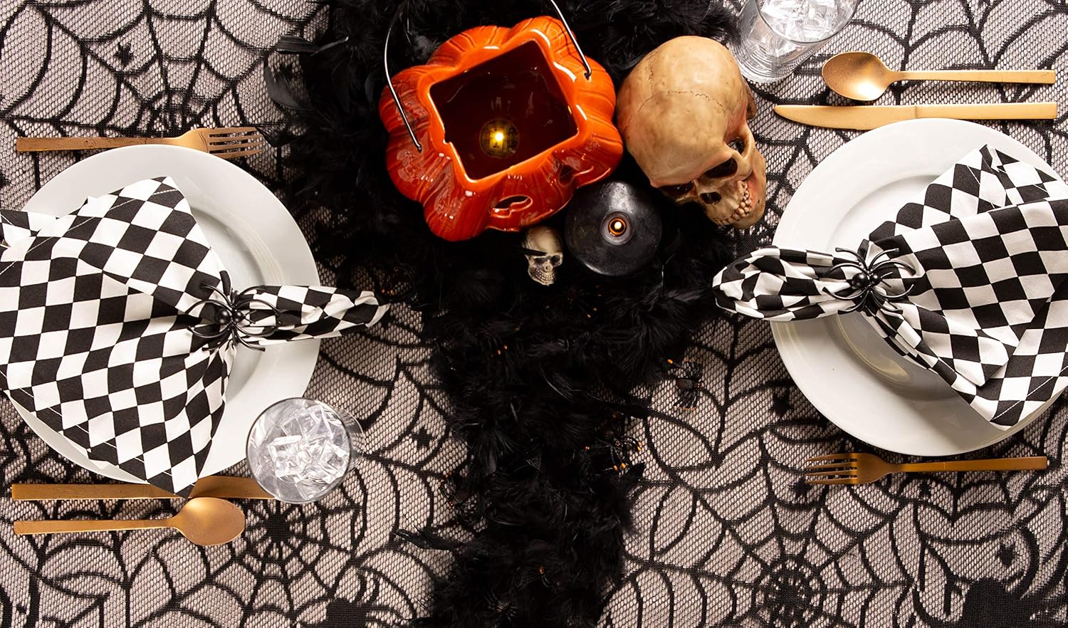 ADD A CREEPY FINISHING TOUCH: This lace tablecloth is the perfect addition to decorate your tabletop for Halloween parties; The lace material adds a elegant and homely look to your table setting while providing haunting ambiance