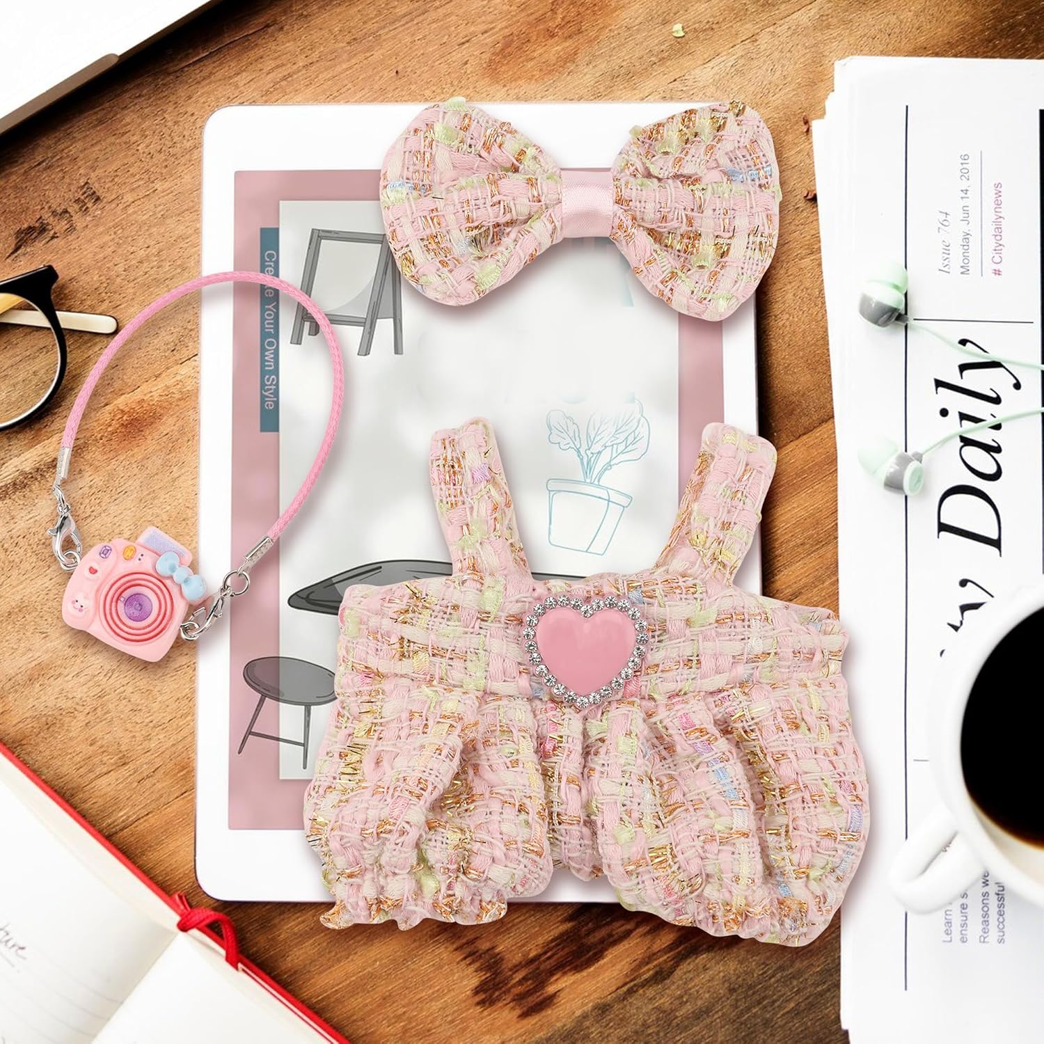 Cute and stylish design: We offer a deluxe four-piece set for your doll, including a bow hair accessory, a camera-shaped bag, a beautiful outfit and a pair of shoes. This is the best way to dress up your dolls. It is fashionable and good-looking.Dress your doll in the most luxurious 17cm doll clothes sets.