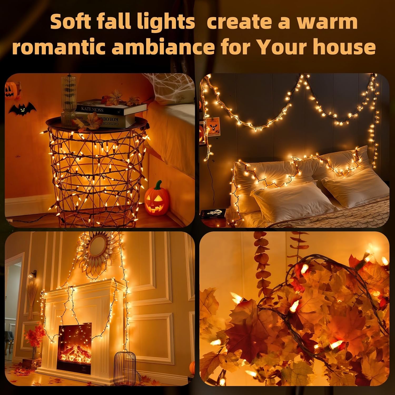 【UL-Certified Fall String Lights】: Our fall decorations lights are rigorously tested and fully comply with UL safety standards for the US market, vintage charm of traditional incandescent bulbs with guaranteed safety! These warm gold mini Christmas lights and fall lights are Perfectly for creating an authentic Halloween or autumn ambiance indoors or outdoors, with peace of mind.