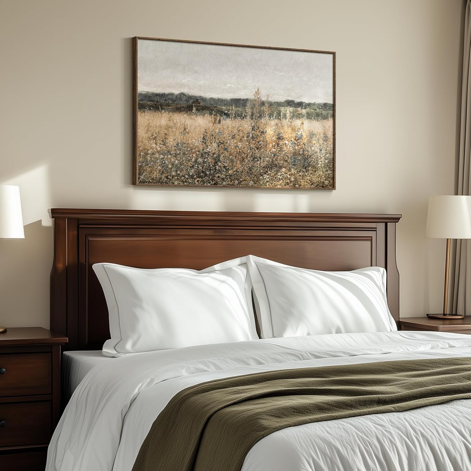 [Vintage Decor & Modern Farmhouse Prints]: The painting combines the charm of vintage decor with the simplicity of modern style. It’s a rustic farmhouse or cottagecore decor that brings a touch of French country into your home. The wildflowers in the picture add a vibrant pop of color, making it a standout piece of artwork. The painting brings cozy and add a touch of nature to your living room, bedroom, dining, bathroom, guest room, home office.