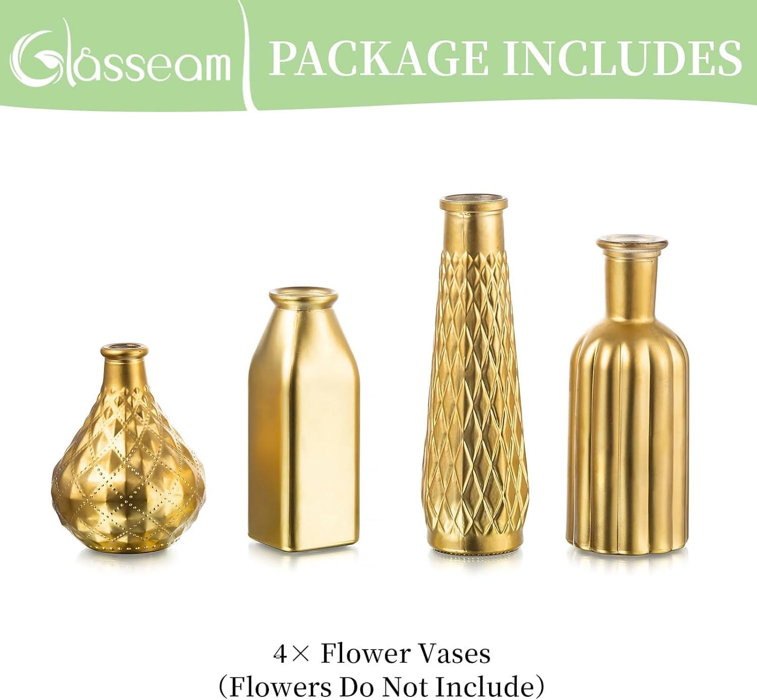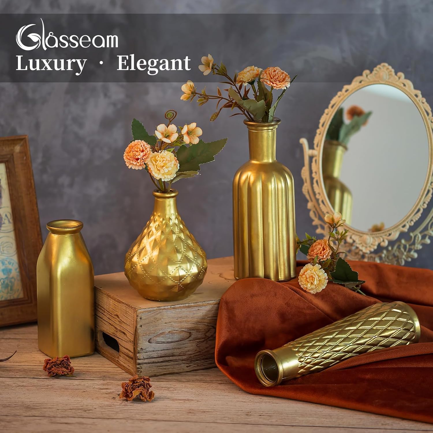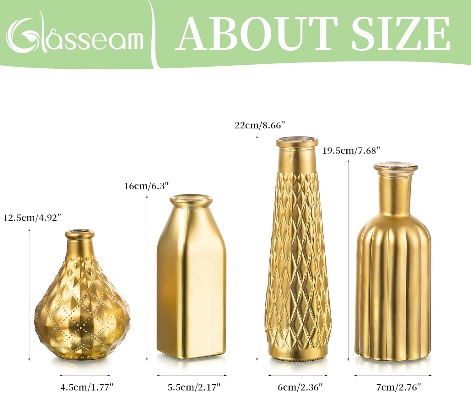Well Crafted Gold Vases for Flowers: The smooth gold finish makes the small glass vase sleek and chic; Made of thick glass, these bud vases are more durable, heavy, sturdy and stable; The exquisite texture details on each crystal vase presents fine workmanship; A indispensible fall table decor for bedroom, bathroom, shelf and kitchen table