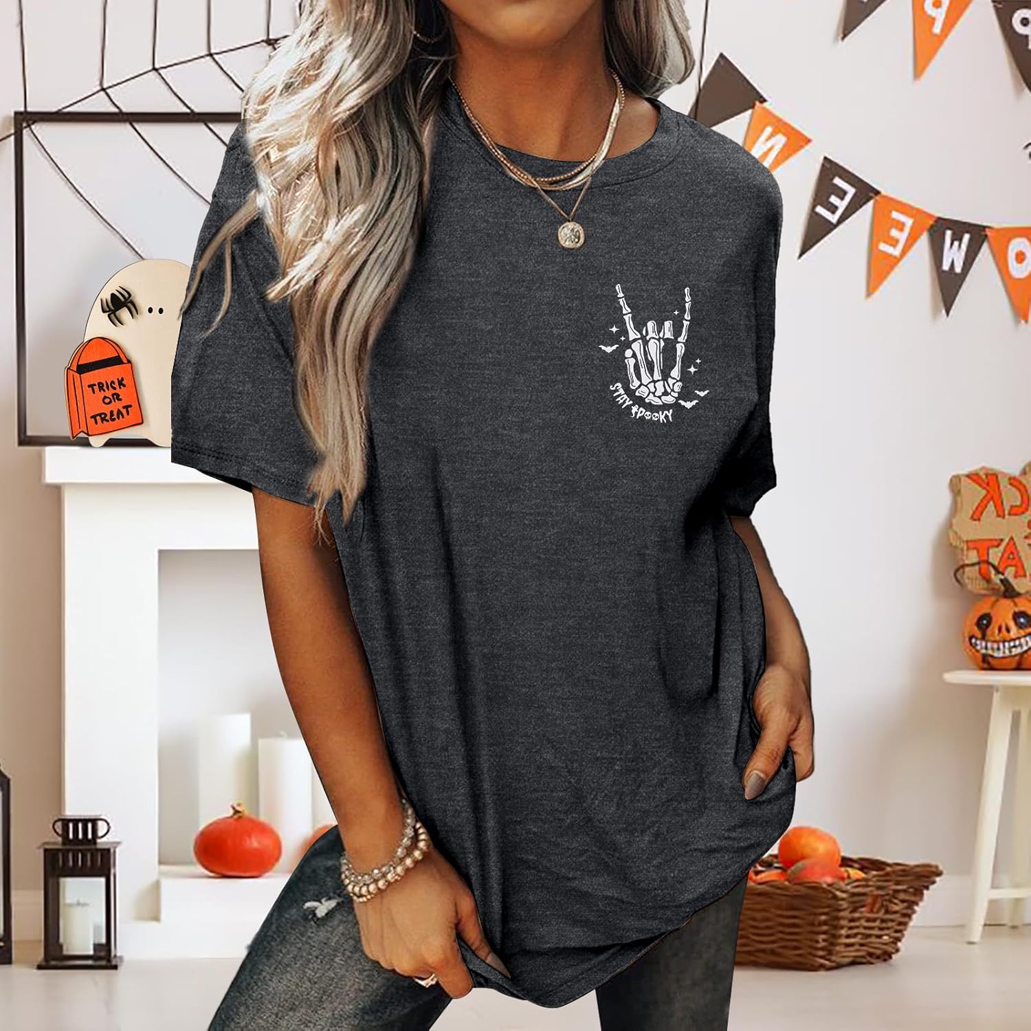 Halloween Oversize Shirt for Women Cute Stay Spooky Shirt Spooky Season Tee Tops