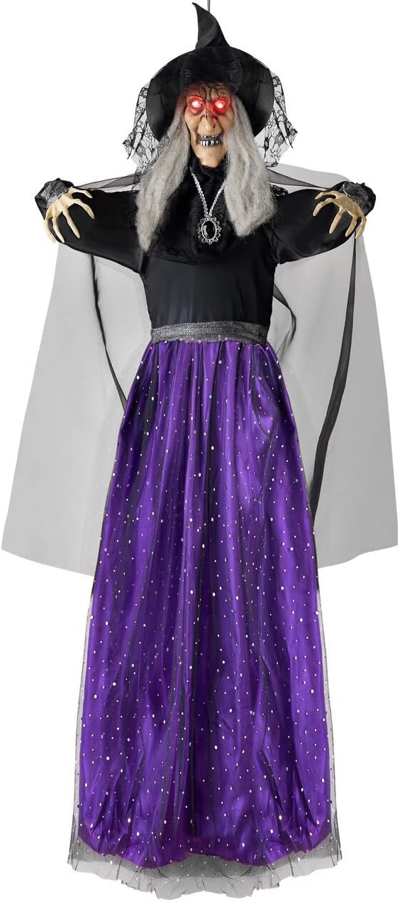 This light-up talking witch has a sound activation function, which creates a creepy and scary atmosphere for any Halloween events, spooky entertainment, haunted house parties, and other theme occasions.