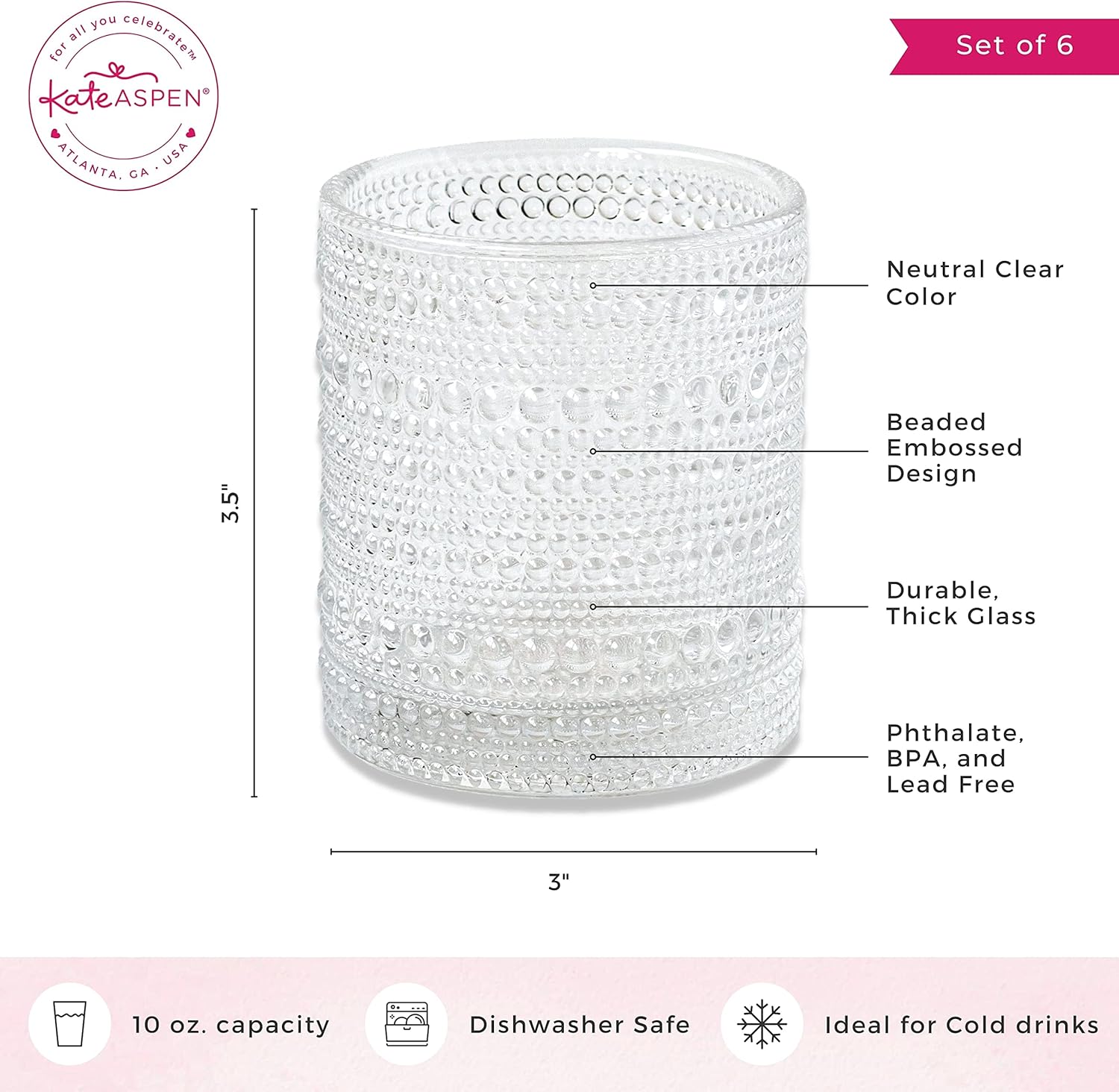 Upgrade your drinkware with the Kate Aspen Beaded Drinking Glasses Set of 6. Each 10 oz glass features intricate beading and a vintage-inspired design, making every sip feel luxurious. Perfect for sweet tea, mint juleps, cocktails, and more, these glasses elevate any drink and enhance your bar cart or kitchen cabinets. Made from lead-free glass, they’re not just functional but also a stylish centerpiece for your home. The glasses are safely bubble wrapped for shipping, ensuring they arrive in perfect condition. Ideal as a hostess, housewarming, or holiday gift, this set is a stunning addition to any collection.