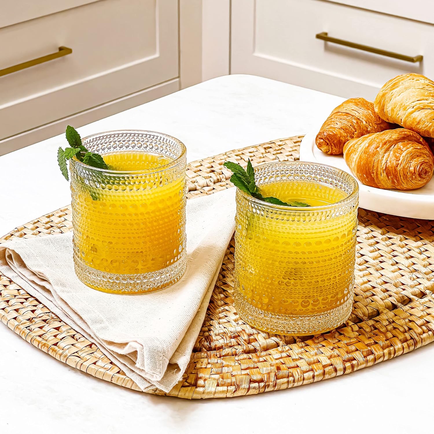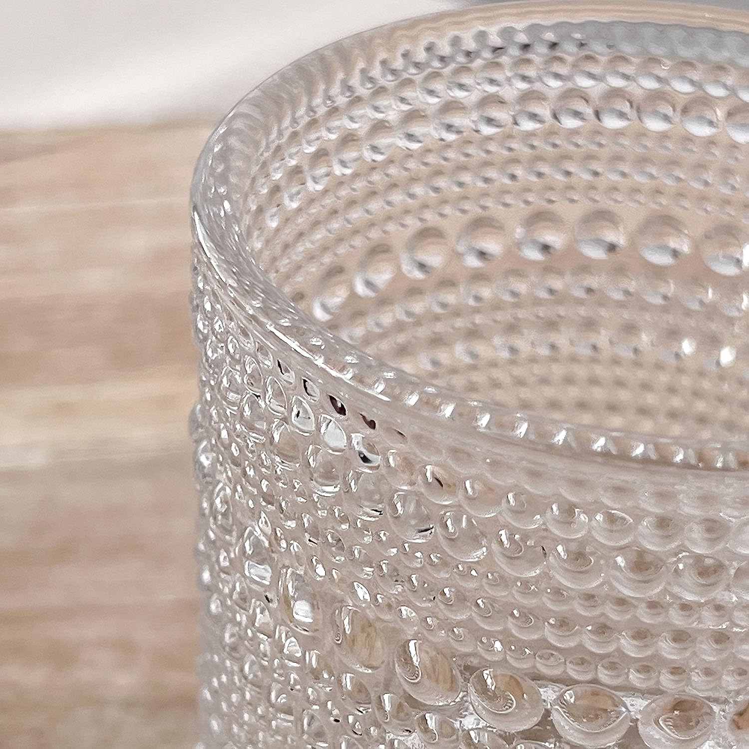 Vintage charm: The 10 oz beaded drinking glasses are embossed with unique polka-dot lines and circular patterns. They double as stylish holders for flowers, office supplies, and more.