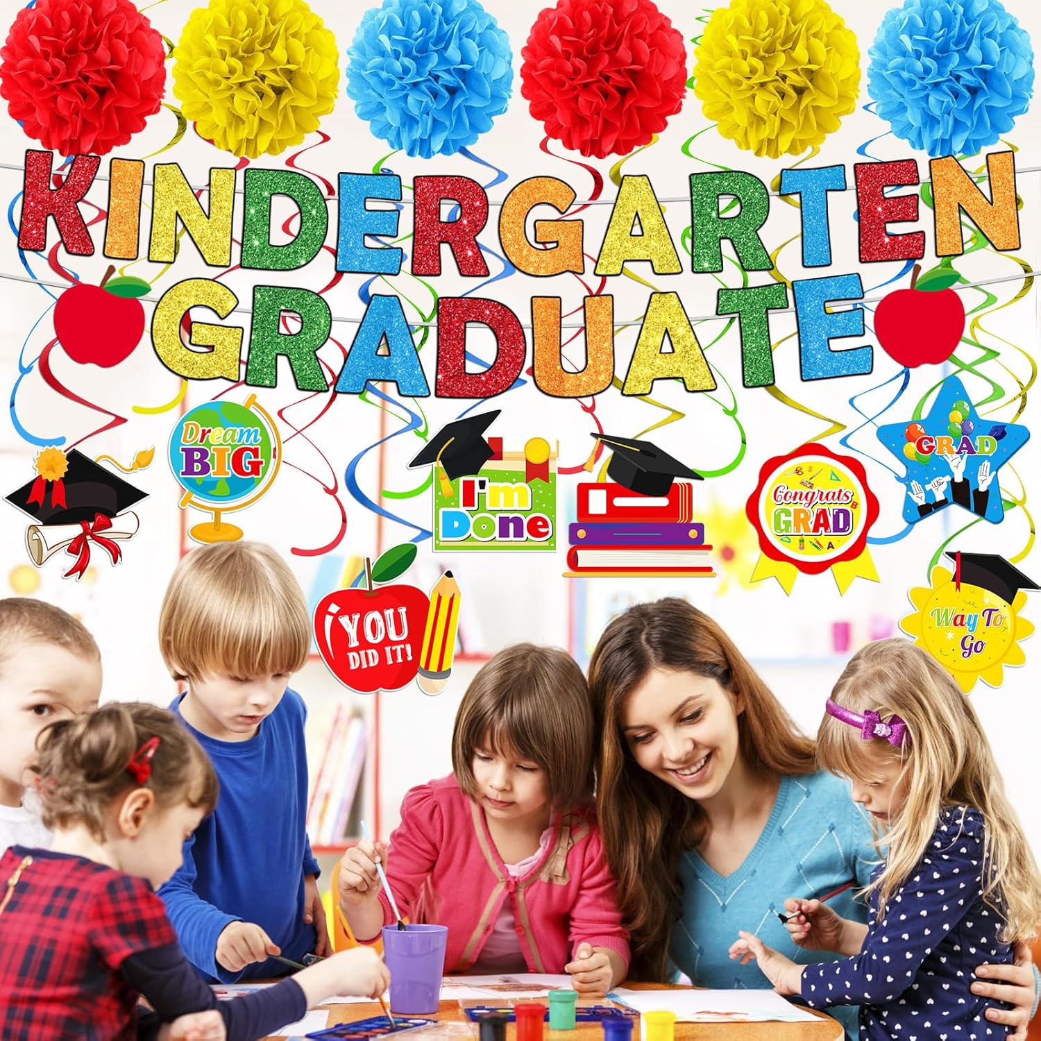 Occasion: Our Kindergarten graduation party decorations banner and hanging swirl are perfect for kindergarten party decorations, last day of kindergarten, kindergarten graduation decorations, or classroom, daycare, kindergarten teacher office decorations