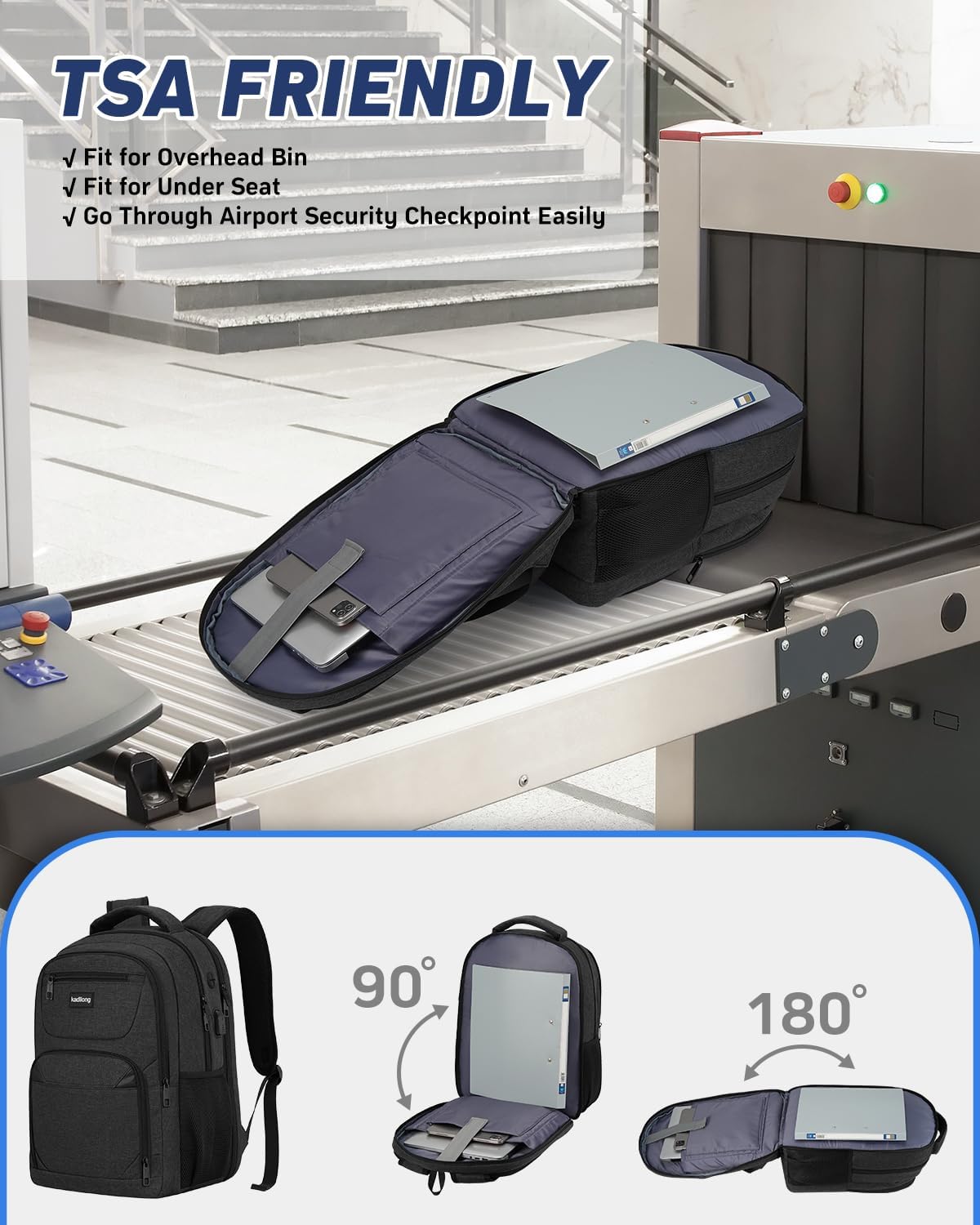 EASY FOR TRAVEL: Unfolds the laptop backpack freely 90-180 degree, exclusive designed for airplane traveling, allowing you to quickly pass through airport security and keep things tidy. Served as durable business work bag, laptop bag or spacious college backpack, you can use it at anywhere for work backpack, school backpack and travel backpack .