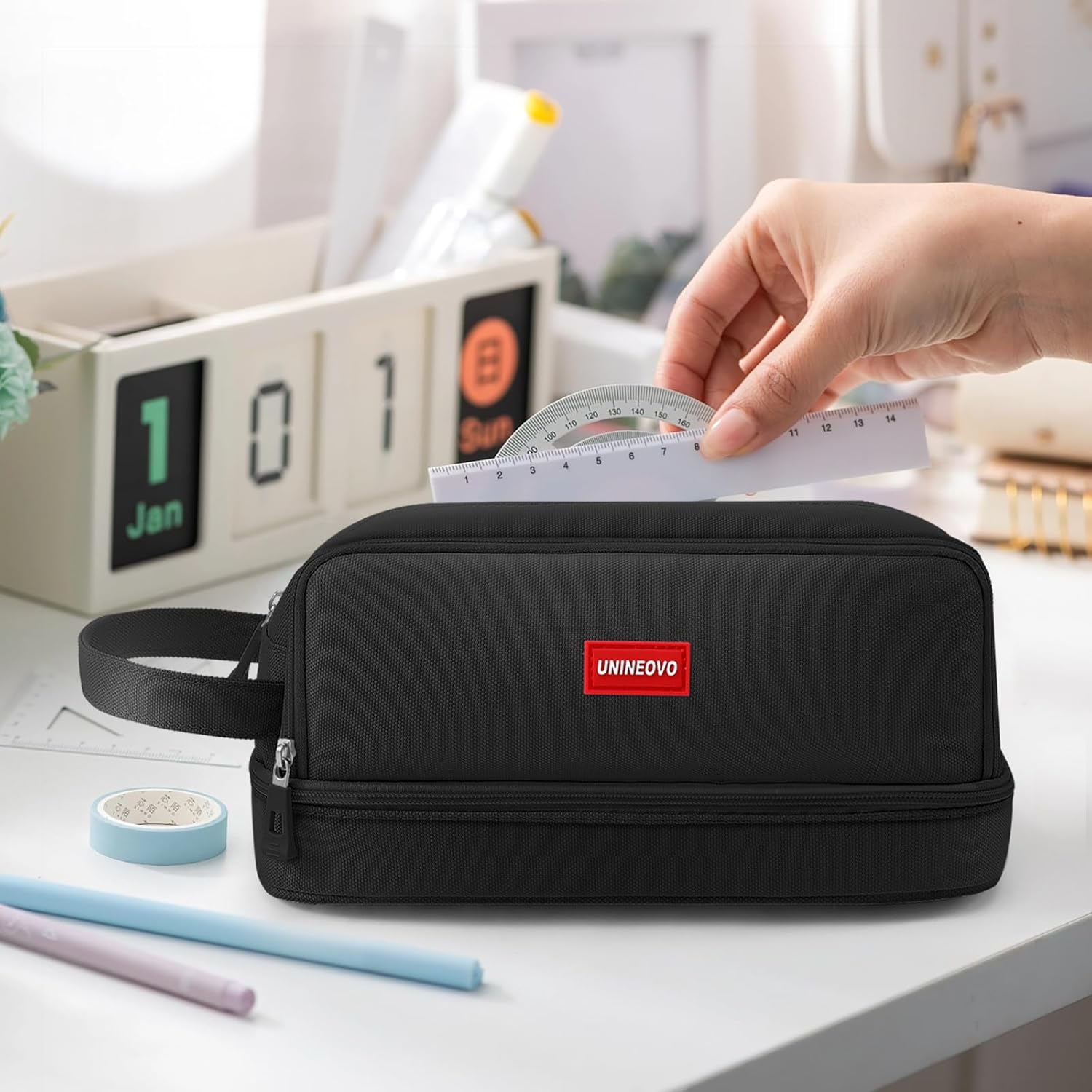 Double-layer pen case crafted with high-density canvas and high-quality two-way zipper. The double-layer design provides ample storage space for all your pens and stationery essentials. Pencil case includes multiple compartments for easy organization and quick access to your favorite writing tools.