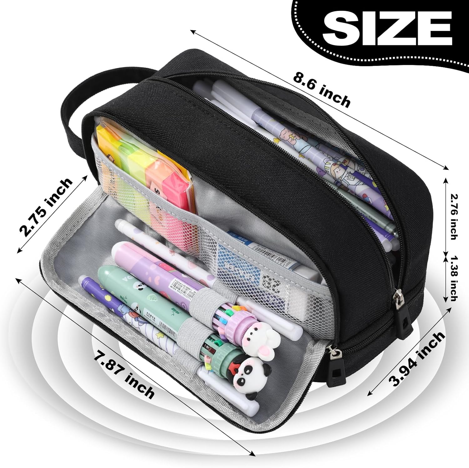 Wide Opening Design – Large capacity pencil pouch for girls has wide top opening with supporting frame, which provides clear visibility. You can easily take out mechanical pencils, sharpeners, stick notes, portable chargers, concealers. Pencil case size 8.60 x 3.14 x 3.74 inches with large storage CHOKING HAZARD-Small parts. Not for children under 3 yrs.