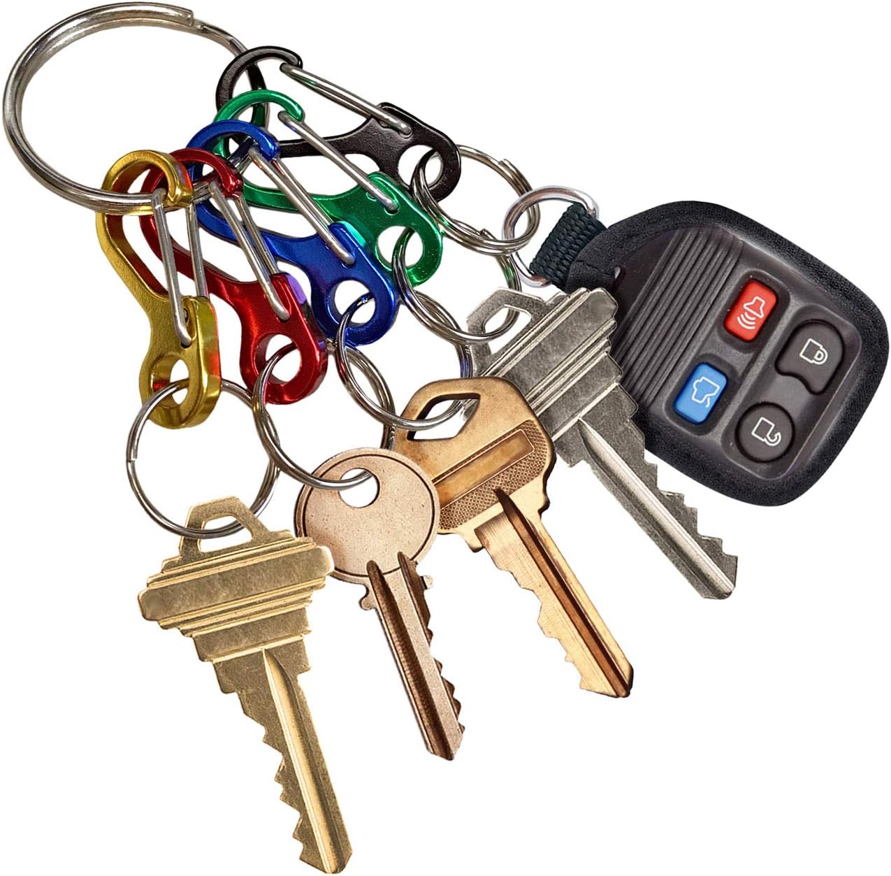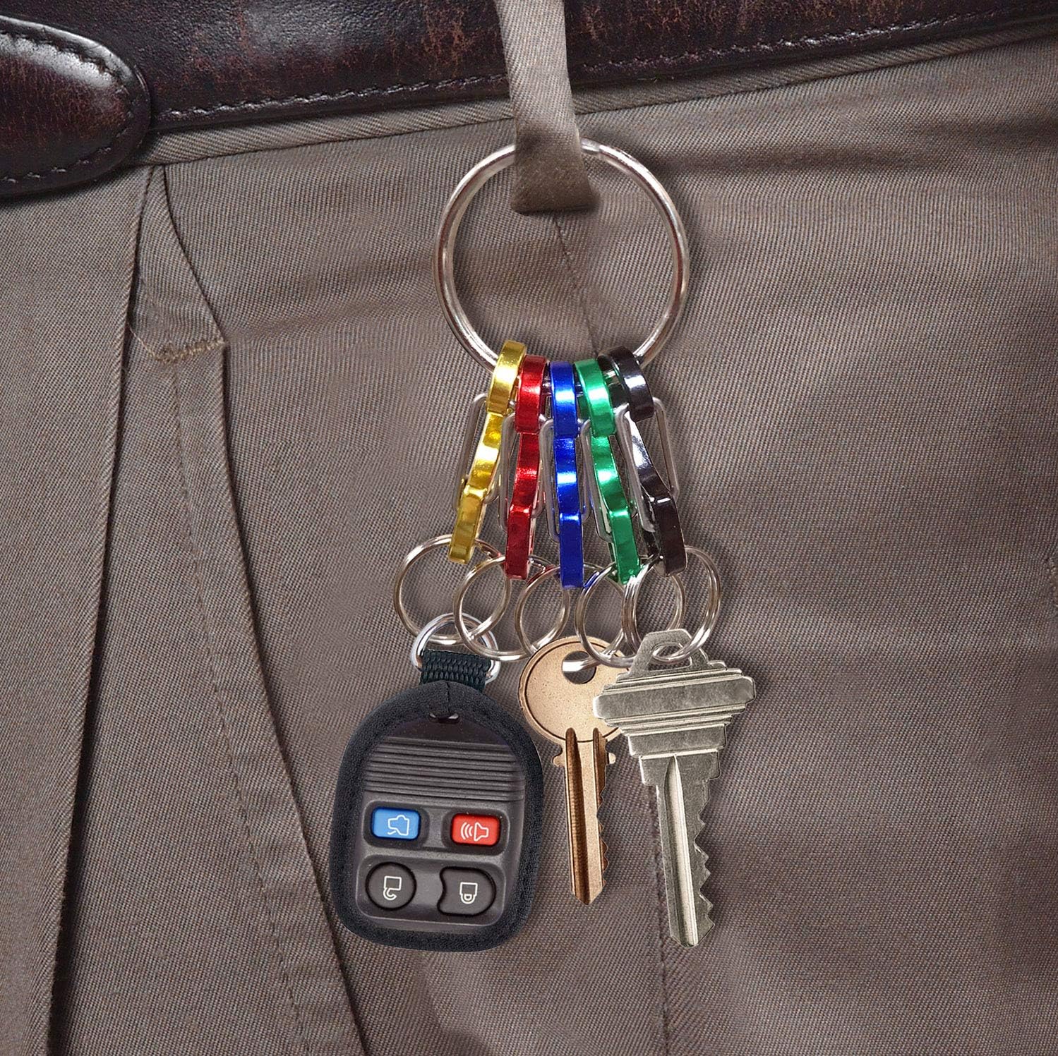 ORGANIZE YOUR KEYS – Five colors allow you to quickly identify different keys for home, office, auto garage, and more. The Carabineer clips are made of high-quality anodized aluminum, so you don’t need to worry about rust!