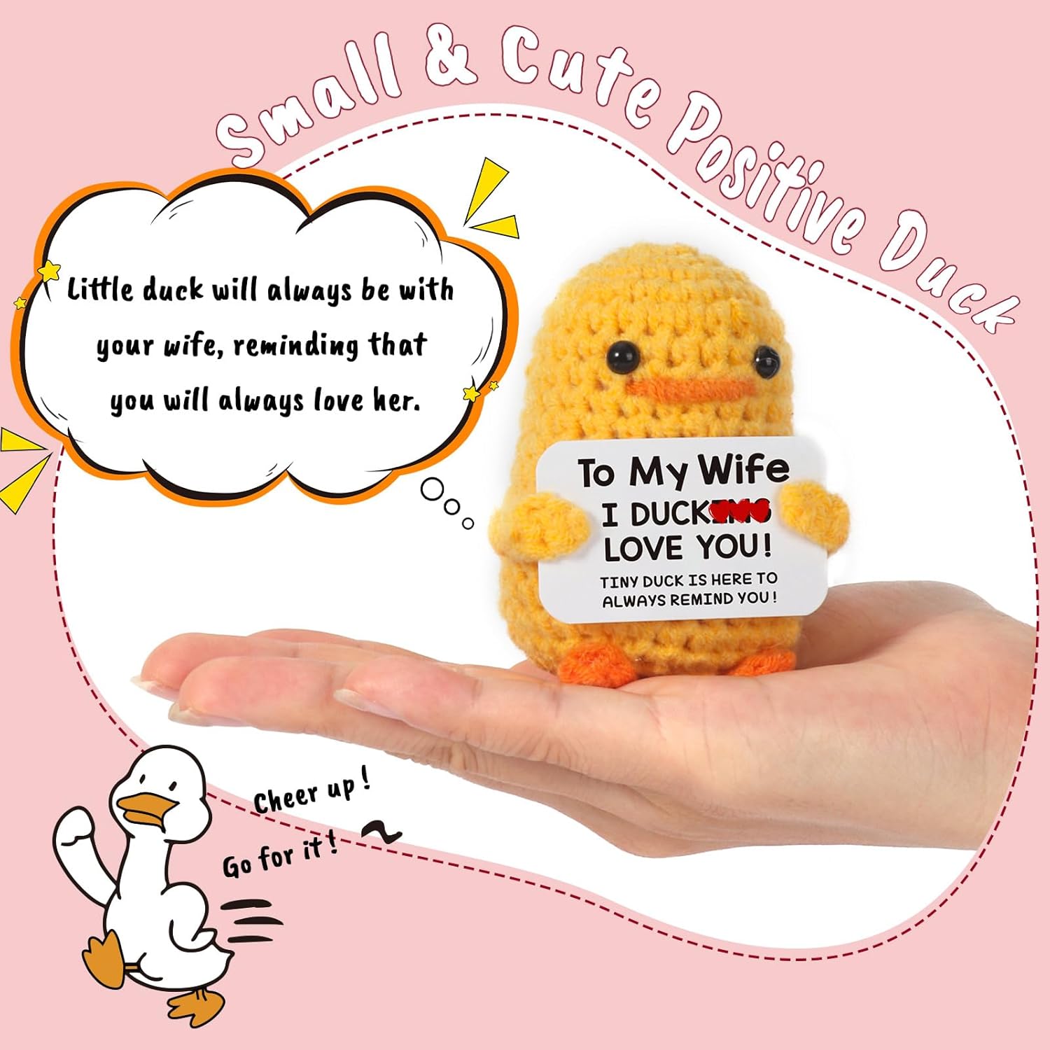 Anniversary Gift for Lover: With its special positive message card, this cute duck becomes a charming addition to your anniversary day. Let this small duck accompany you through this unforgettable day.