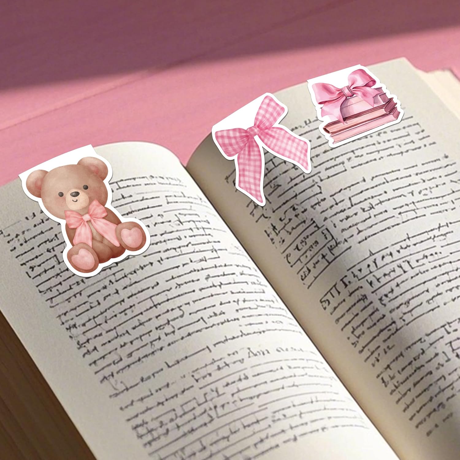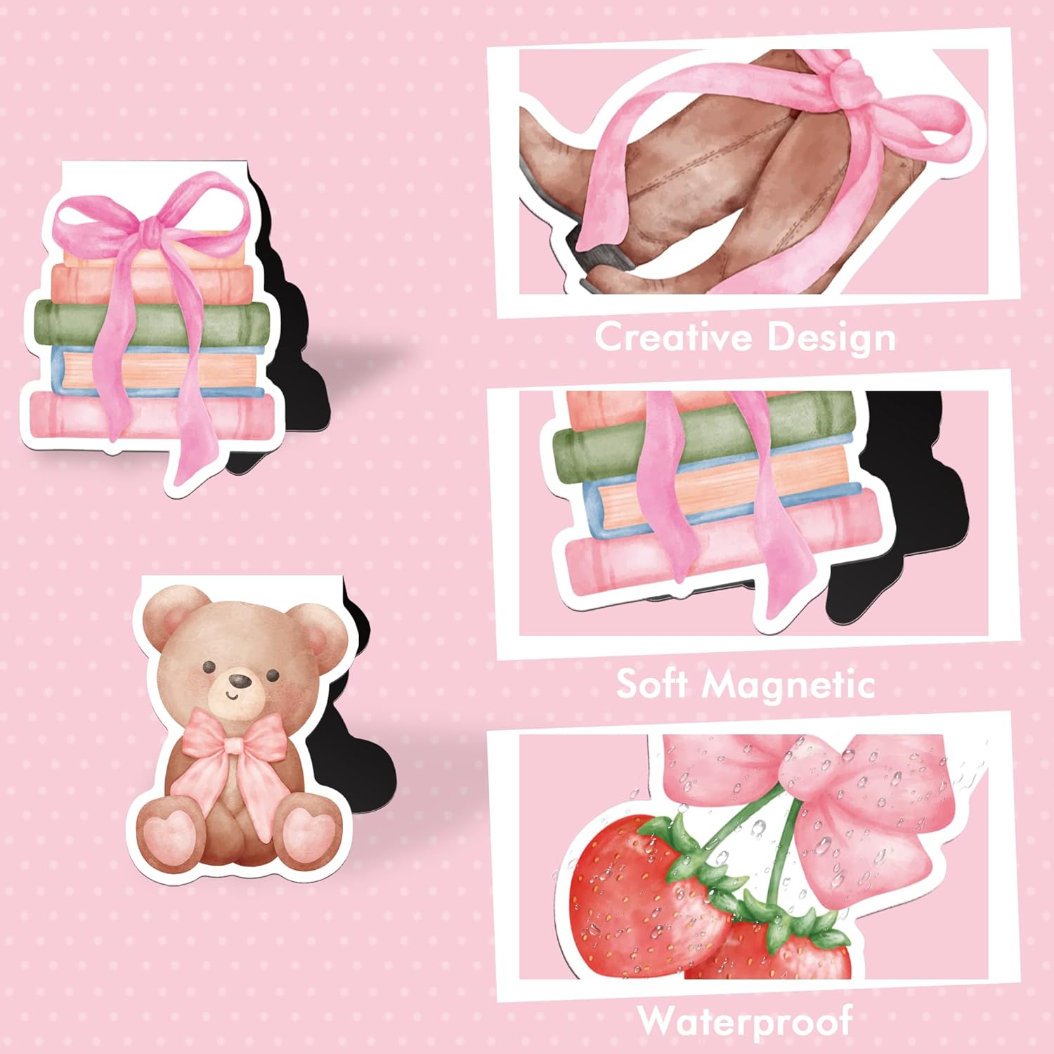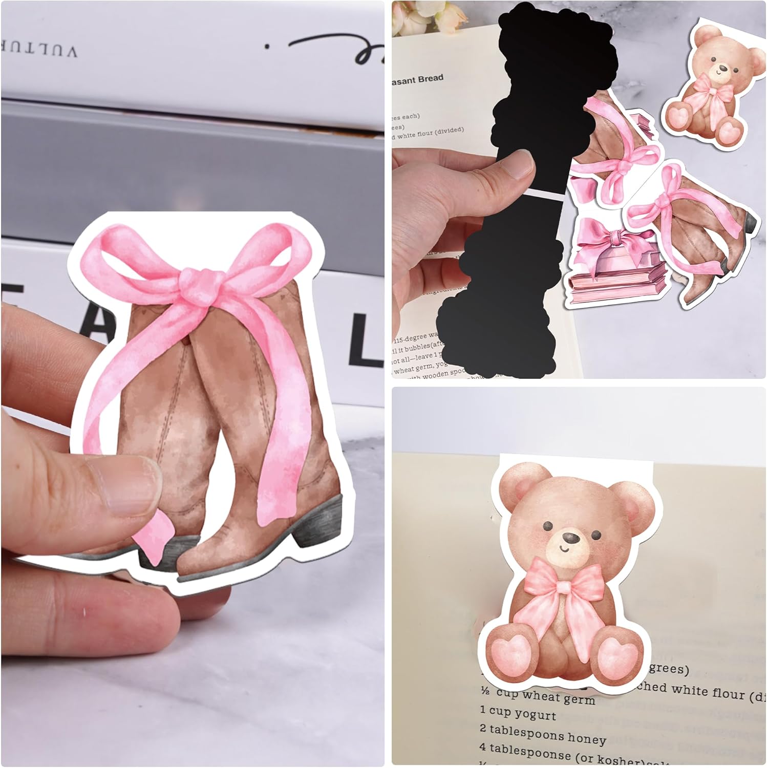Elegant Coquete Bow Design: Featuring charming pink bow designs, this set of 12 assorted magnetic bookmarks combines sweetness and style, adding a refined touch to your reading experience while marking your favorite pages