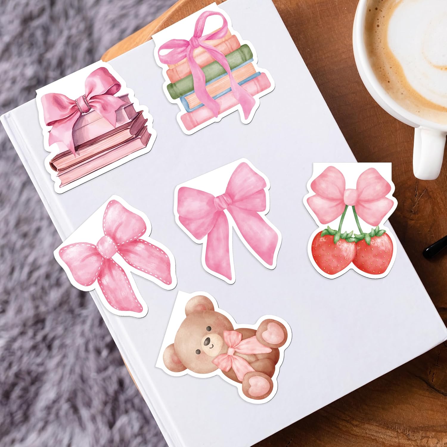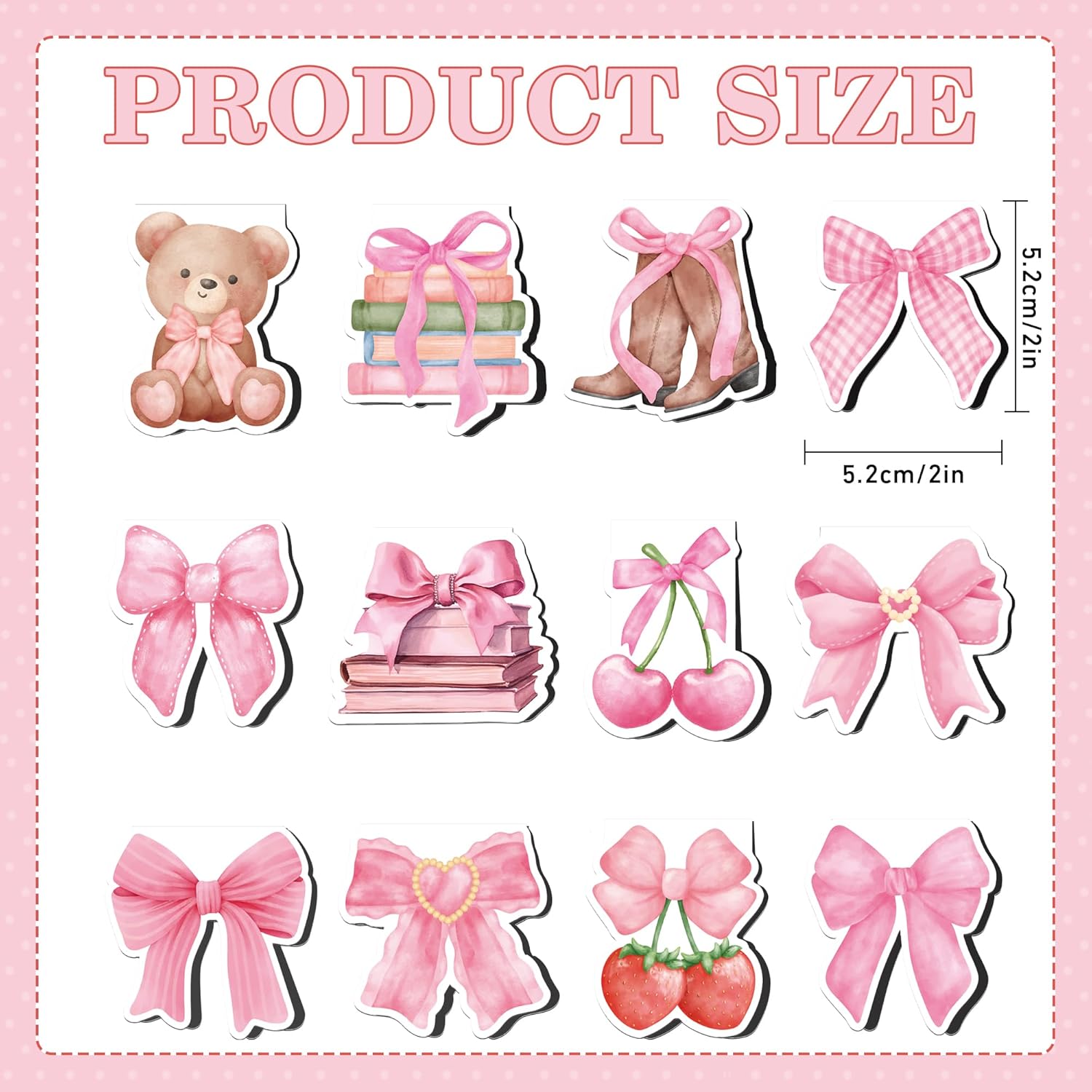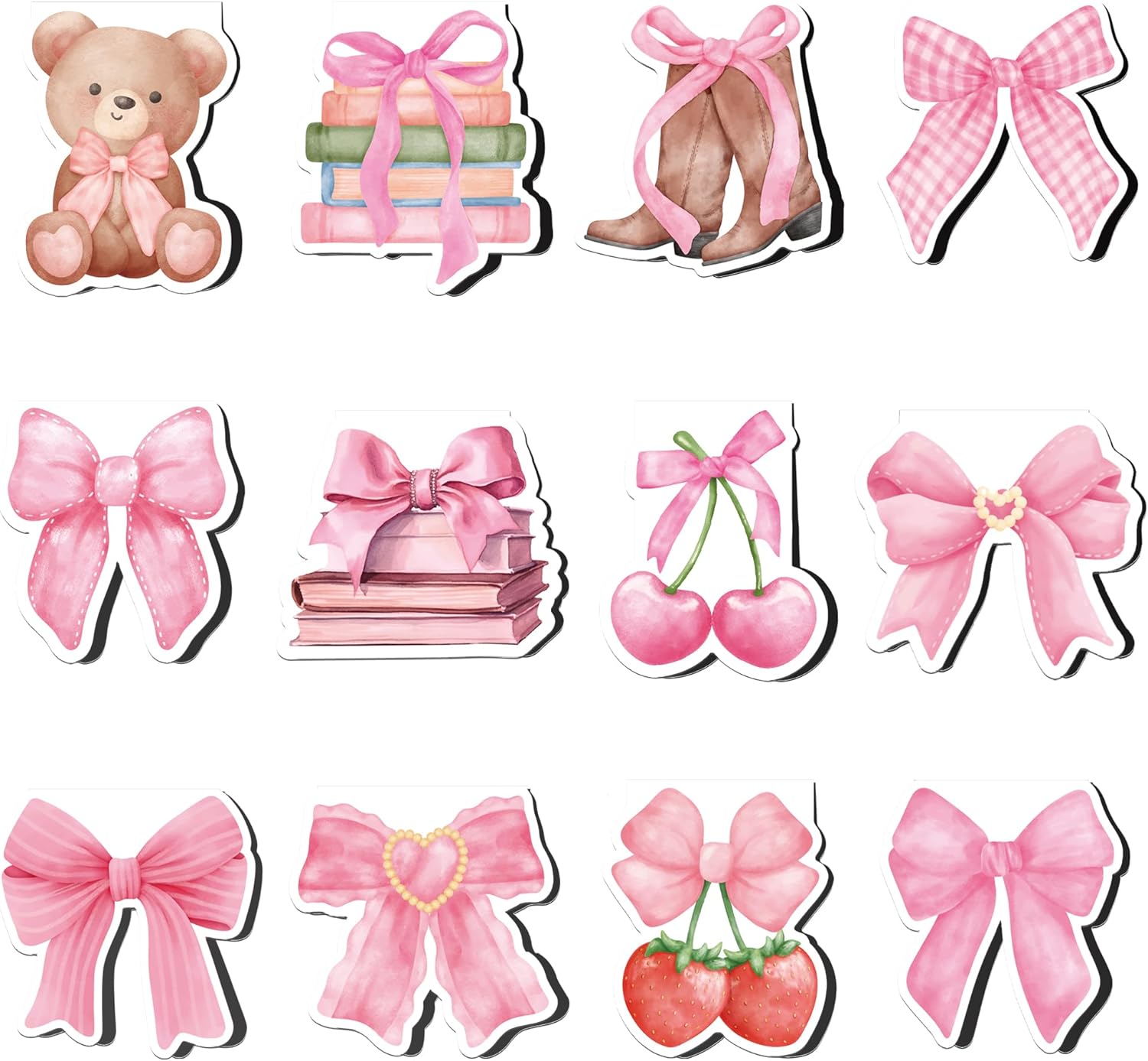 Elegant Coquete Bow Design: Featuring charming pink bow designs, this set of 12 assorted magnetic bookmarks combines sweetness and style, adding a refined touch to your reading experience while marking your favorite pages