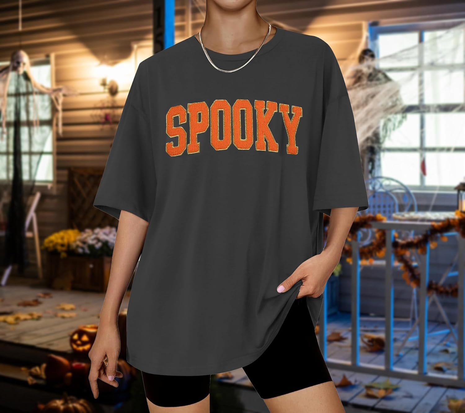 Oversized Spooky Shirts for Women Vintage Halloween Shirt