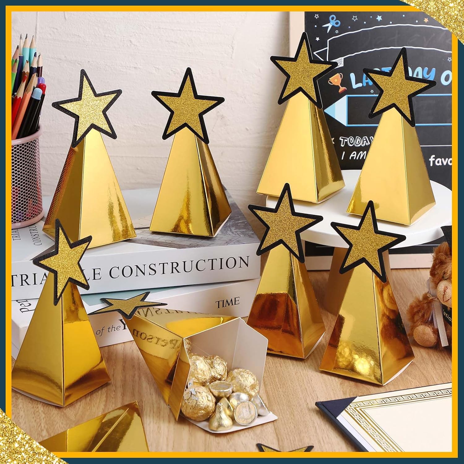 Distinctive Back to School Party Decorations: the star trophy candy box adopts a golden triangular pyramid design with stars, making your first day of school party shiny and distinctive, just like a glitter trophy, fully affirming and showing the brilliance of your new semester