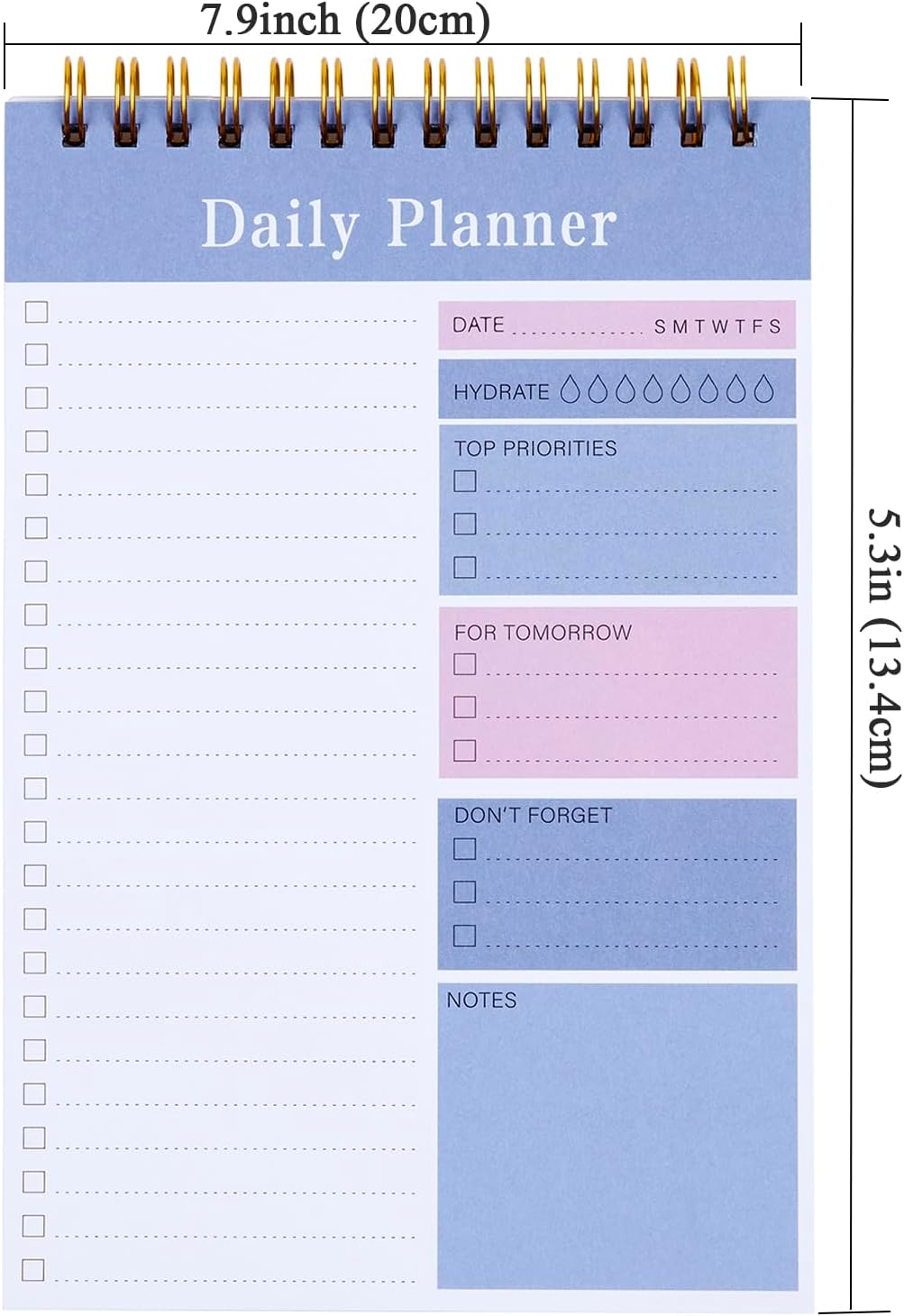 【Spiral Daily Planner Notepad】-Apart from the traditional notepad, this UPDATED daily planner 2025 are made of high quality spiral on the top, which allows you to turn over the pages fluently and keep your daily checklist record.