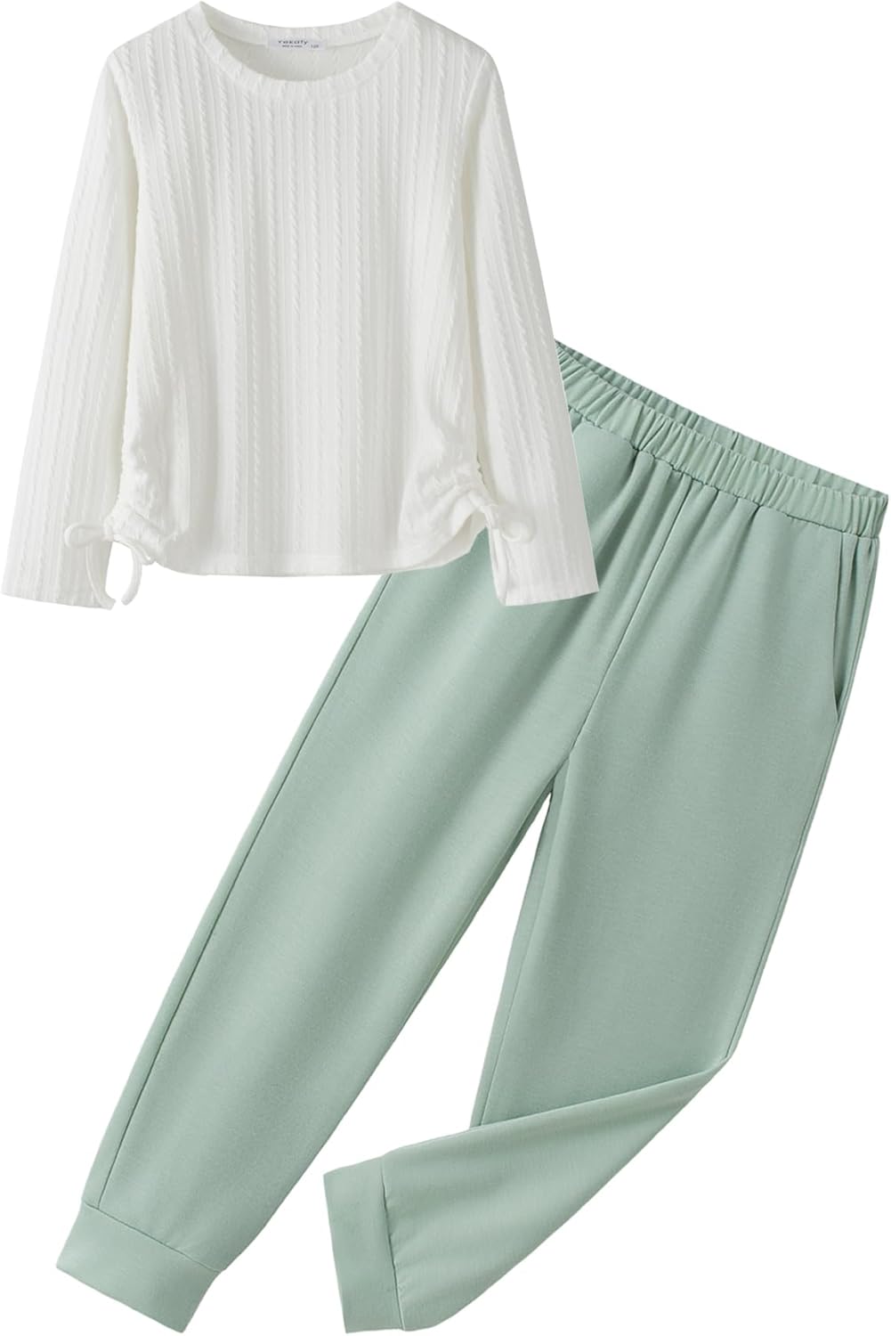 Girls Back to School Clothes Knit Long Sleeve Top + Pants With Pockets